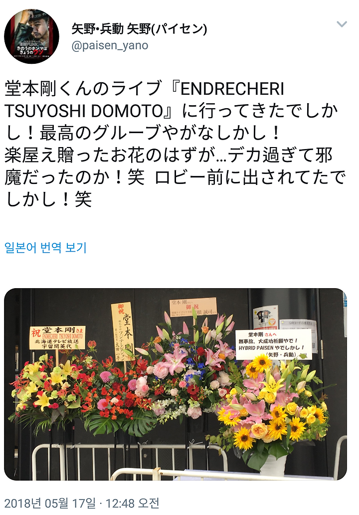 楽屋え贈ったお花のはずが…デカ過ぎて邪魔だったのか!笑 ロビー前に出されてたでしかし!笑