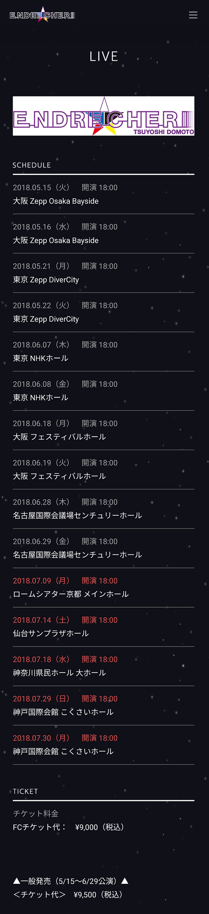"ENDRECHERI TSUYOSHI DOMOTO"추가 공연
