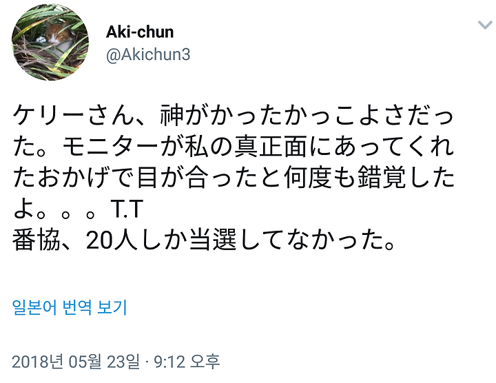 케리상, 신들린 멋짐이었다. 모니터가 내 정면에 있어 준 덕분에 눈이 맞았다고 몇번이나 착각했어..T.T