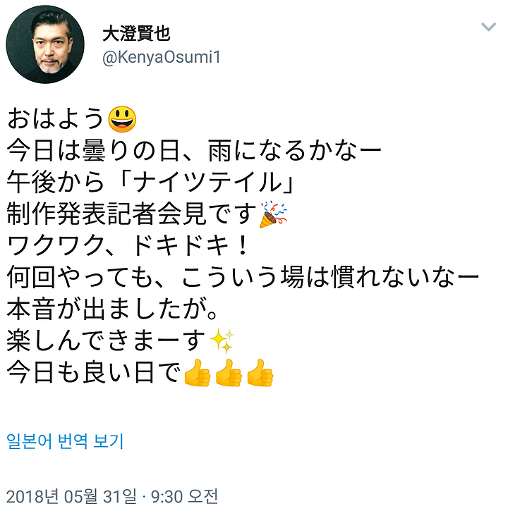 [도모토 코이치] 5/31 오오스미 켄야상 트윗 (나이츠테일 제작발표 기자회견)