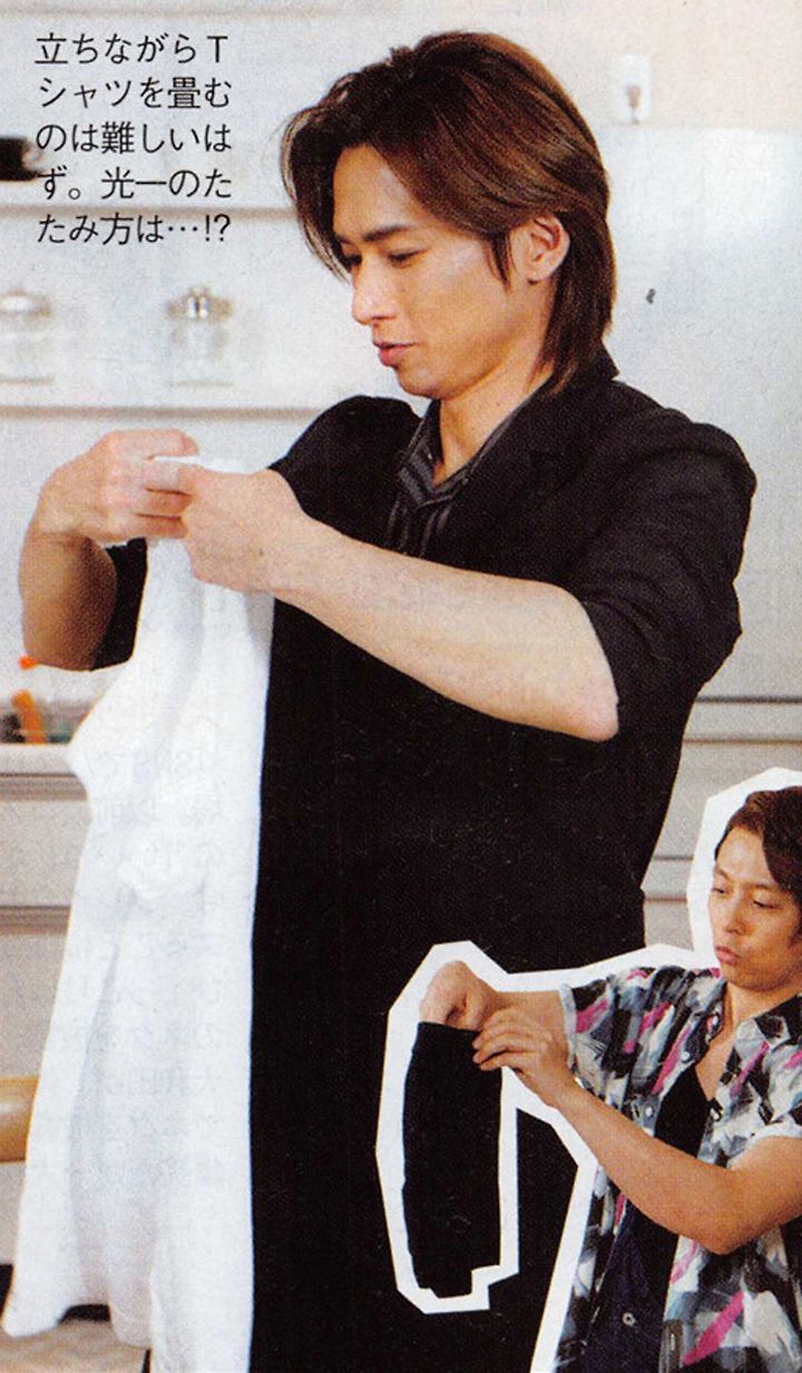 코이치나 쯔요시가 평소 어떻게 티셔츠를 개는지 보고 싶다고 하는 나가세.