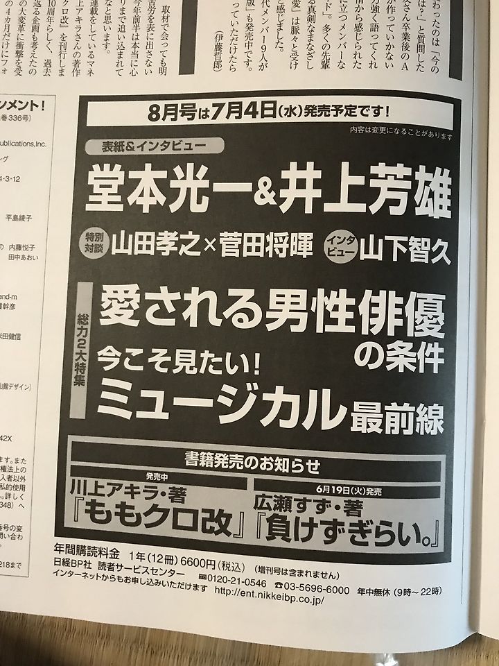 [도모토 코이치] 7/4 닛케이엔터테인먼트 8월호 (표지)
