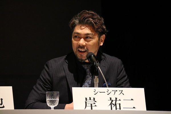岸 アテネ大公シーシアス役をやらせて頂きます岸祐二です。できれば僕の名前を憶えて帰って頂きたいと思います(笑)。2003年の『レ・ミゼラブル』で帝国劇場にアンサンブルとして立たせて頂いて、今、15年経って、同じジョン・ケアードさんの作品で、メインキャストとしてこういうところに立たせて頂くことを本当に光栄に思っています。この私のシーシアスという役が、国を倒し、光一君と芳雄君、二人の騎士を捕虜にします。そして妹に素晴らしい音月桂さんを迎え、そして世界的な歌姫、僕にとっても伝説的な歌姫の(島田))歌穂さんを嫁にするという、こんな興奮する出来事は人生でもそうないのではないか?と思うくらいで、毎日稽古場で興奮しております。そして2007年の『レ・ミゼラブル』以来のジョン・ケアードさんとご一緒させて頂けるということで、ジョンさんの世界に、演出に飛び込めることをありがたく思っています。また先輩である大澄賢也さんとは、今年やった舞台でご一緒させて頂いて、すごく仲良くして頂いて、僕にとってお兄さんのような存在の方ですので、また共演できることを楽しみにしています。この作品は和洋折衷というか、色々な要素があると思いますので、楽しめること間違いないと思います。是非よろしくお願い致します。