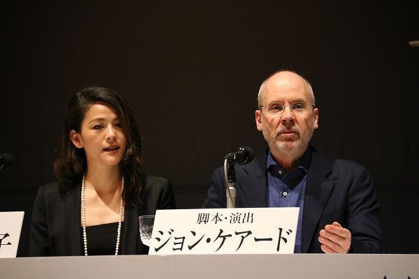 夫君のケアードの挨拶の通訳も務めていた日本語脚本・歌詞の今井麻緒子は、「これまではどこかの国で上演された作品を訳す作業をしていたが、今回は日本初演なので、この仕事を引き受けた時点では台本も出来ていなかったので、どうなるかという想いもあったが、ダンスのワークショップにも参加する等、作品の立ち上がりから参加したことで、オリジナル作品を創る難しさと同時に楽しさを感じている。稽古場でも役者さんに合わせてどんどん脚本を変えていくので、ブロードウェイで初演の出演者を"オリジナルキャスト"と呼ぶのはこういうことだったのかと、彼らも作者の一部として、インスピレーションを与えていくのだと実感している。そういう意味ではもちろん今は脚本も出来上がっているのだけれども、私の仕事も初日までなくなりそうにない。ジョンのシェイクスピアらしい韻を踏んだ台詞もたくさんあるので、日本語に訳す作業は難しくもあるけれども、初日の幕が開くのを楽しみにしている」と現場にいるならでのエピソードが明かされた。