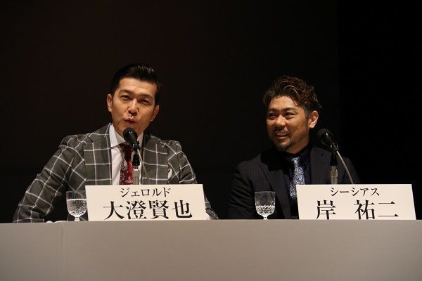 会見の冒頭に、稽古初日の和やかな映像がスクリーンに映し出されたあと、池田篤郎から、「2000年に『SHOCK』で帝劇に鮮烈デビューを果たして以来、全公演全席即日完売の公演は18年間で1630回を超え、日本のミュージカル単独主演記録1位を更新し続けている堂本光一さんの新たな作品に、同じく2000年にミュージカル『エリザベート』東宝版初演での皇太子ルドルフ役で、ミュージカル界に彗星の如く現れて以来、舞台を中心に大活躍を続けている井上芳雄さんがご一緒されるというのは、2000年というミレニアムというご縁で二人が結ばれていたのかも知れないと思う。新たなことをしたいというお二人の新作に、名匠ジョン・ケアードさんが力を発揮してくださり、二人に相応しい二人ならではのミュージカルの新時代を拓く作品が出来上がることを確信している。ご期待頂きたい」という挨拶があった。