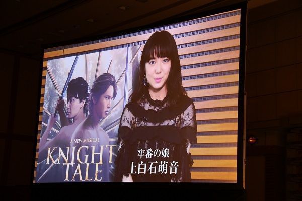 上白石 (映像メッセージ)皆さんこんにちは。ミュージカル『ナイツ・テイル─騎士物語─』で牢番の娘役を演じます上白石萌音です。本日は製作発表に参加できずとてもとても残念に思っております。申し訳ありません。私は小さい頃からミュージカルが大好きで、ずっとミュージカルを観て、自分自身も楽しんで育ってきました。このお仕事をはじめるきっかけもミュージカルがあったからです。なので、その私にとって憧れの大先輩方と今回ご一緒させて頂けること。そしてジョン・ケアードさん、デヴィッド・パーソンズさんはじめ、世界的なスタッフの皆様とご一緒できること、大変光栄にそして楽しみに思っています。私にとって初めての帝国劇場ということもあり、今から緊張しているのですが、皆様の背中を見て追いかけて、たくさん学んで初日を迎えられるよう精進したいと思います。是非皆さんも作品にご期待ください。