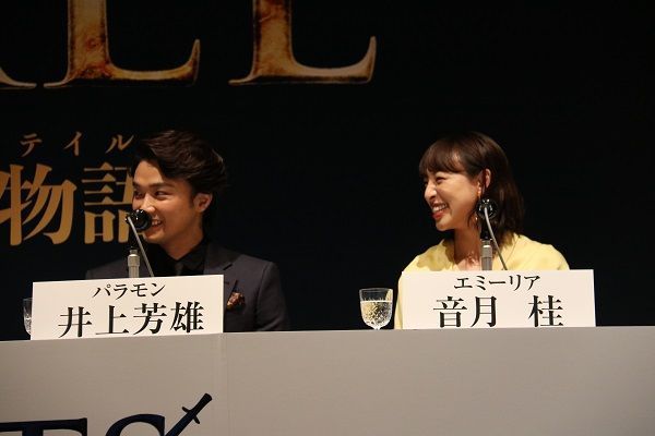 캐스트의 인사에 이어 이 날 스케줄 사정으로 결석이 된 또 다른 메인 캐스트, 옥지기 딸 역의 카미시라이시 모네의 영상 메시지가 스크린으로 나왔다.