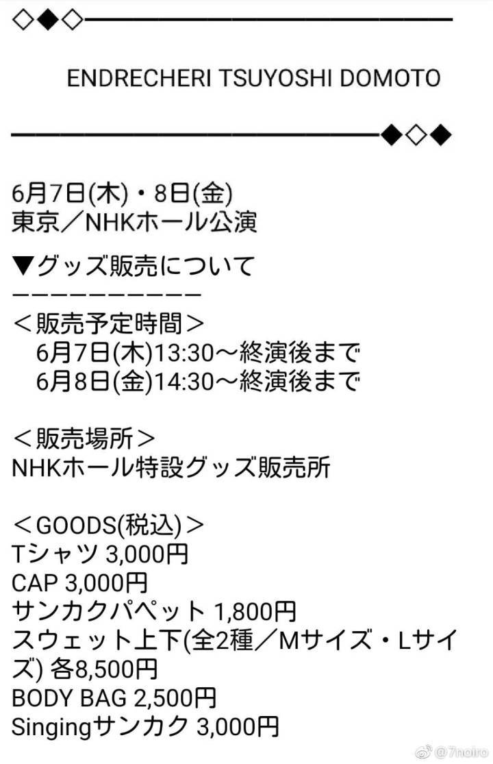 [도모토 쯔요시] ENDRECHERI 굿즈 판매 시간 @ NHK홀