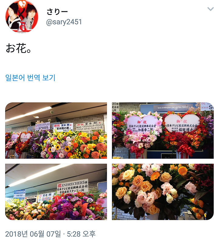 [도모토 쯔요시] 6/7 ENDRECHERI LIVE @ NHK 홀 (화환 리스트)