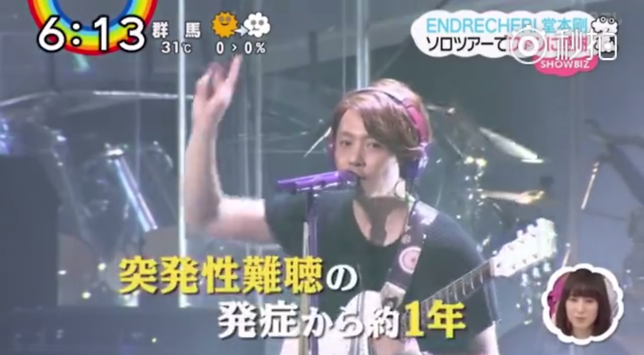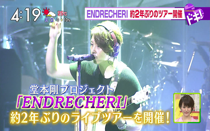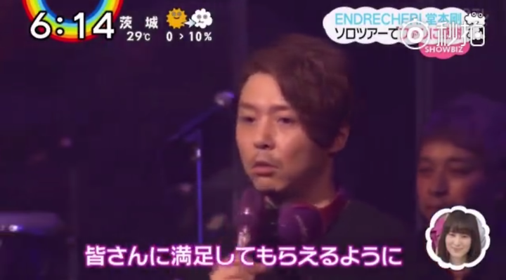 今年再始動した堂本剛のソロプロジェクト・ENDRECHERI(エンドリケリー)が7日、東京・渋谷のNHKホールでライブ『ENDRECHERI TSUYOSHI DOMOTO』を開催。剛は昨年6月に突発性難聴を患ったが、現在の病状をファンに報告した。