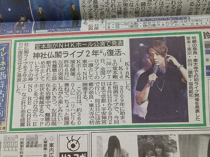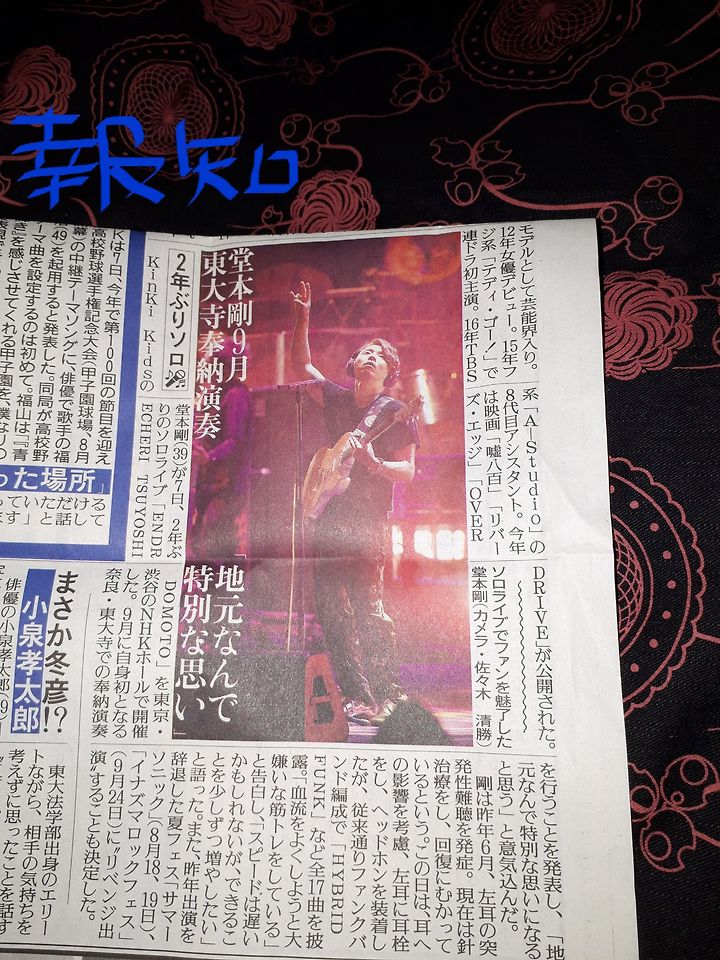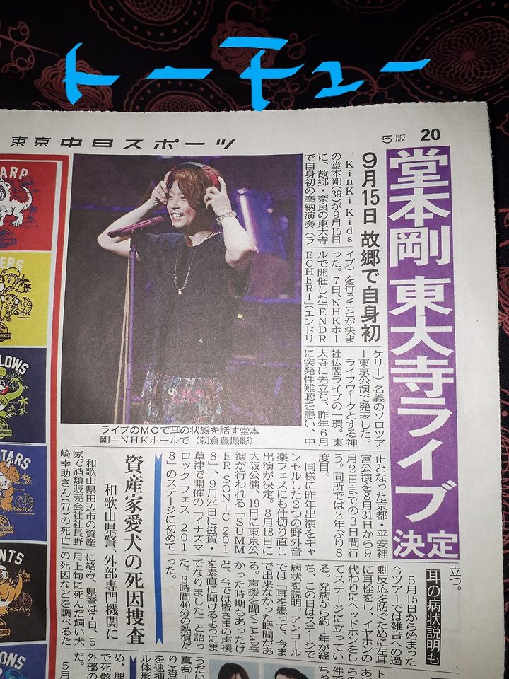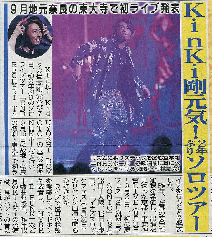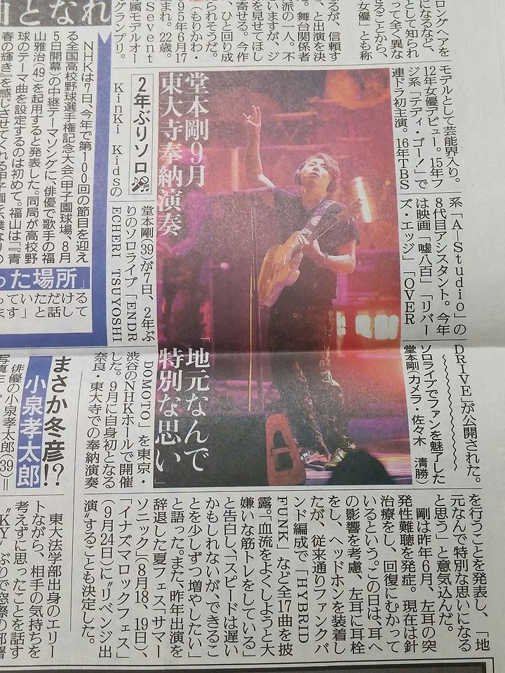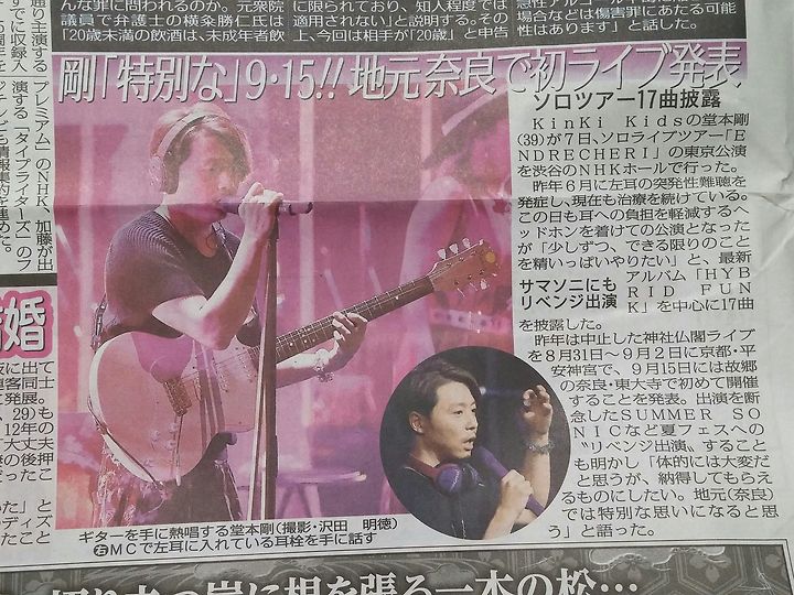 KinKi剛は元気!2年ぶりソロツアー 9月地元奈良の東大寺で初ライブ発表