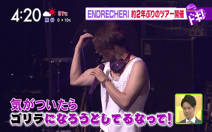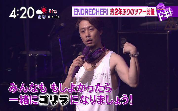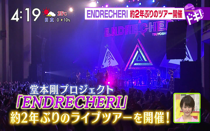 올해 재시동한 도모토 쯔요시의 솔로 프로젝트·ENDRECHERI가 7일, 도쿄·시부야의 NHK홀에서 라이브 『 ENDRECHERI TSUYOSHI DOMOTO』르 개최. 쯔요시는 지난해 6월에 돌발성 난청에 걸렸으나, 현재 병세를 팬들에게 보고했다.