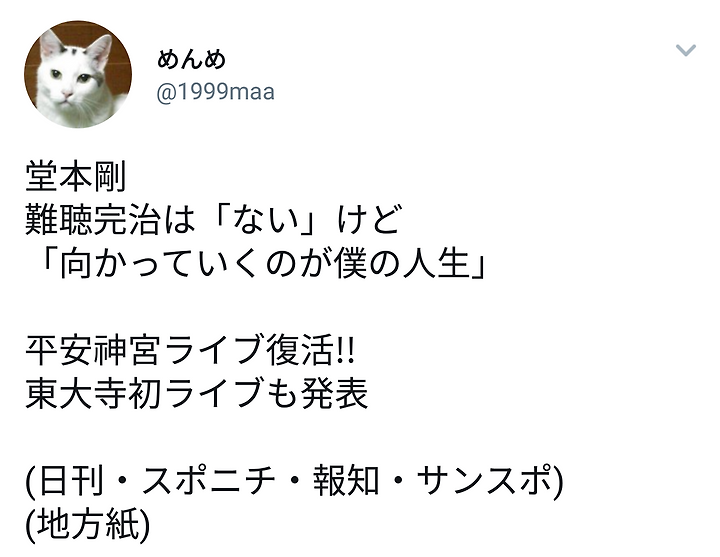 堂本剛、突発性難聴からの回復状況を報告「完全に治ることはないだろうなと」