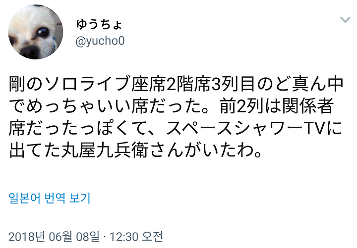 쯔요시의 솔로 라이브 좌석 2층 좌석 3열째의 한복판으로 너무 좋은 자리였다. 앞 2열은 관계자 자리였던 듯 해서 스페이스 샤워 TV에 나온 마루야 큐베에 ㅣ씨가 있었어.