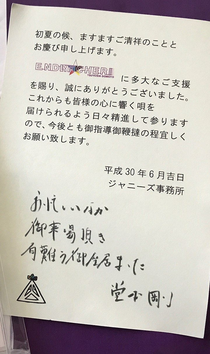 ENDRECHERI TSUYOSHI DOMOTO 에 많은 지원을 보내주셔서 진심으로 감사합니다.
