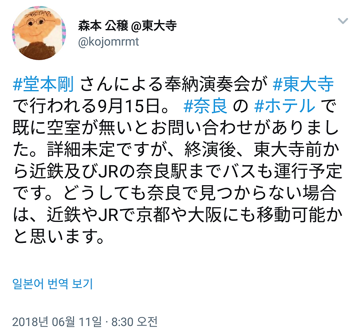 #堂本剛 さんによる奉納演奏会が #東大寺 で行われる9月15日。 #奈良 の #ホテル で既に空室が無いとお問い合わせがありました。詳細未定ですが、終演後、東大寺前から近鉄及びJRの奈良駅までバスも運行予定です。どうしても奈良で見つからない場合は、近鉄やJRで京都や大阪にも移動可能かと思います。
