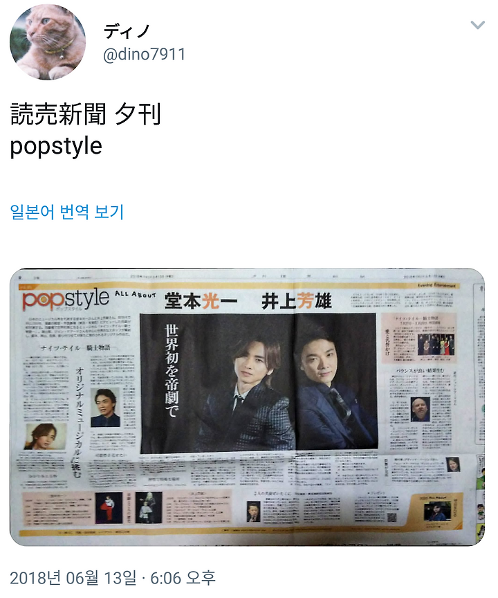 [도모토 코이치] 6/13 요미우리 석간 popstyle