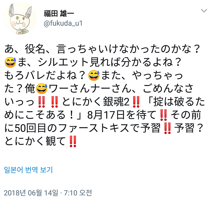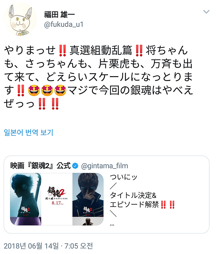 170422 후쿠다 감독 트윗 (은혼 초호시사) (http://oding.tistory.com/9773)