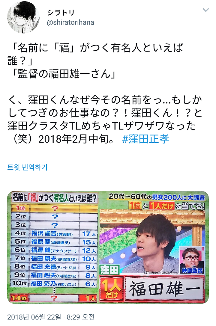 - 이름에 "福(후쿠)"가 붙는 유명인이라고 한다면 누구?"