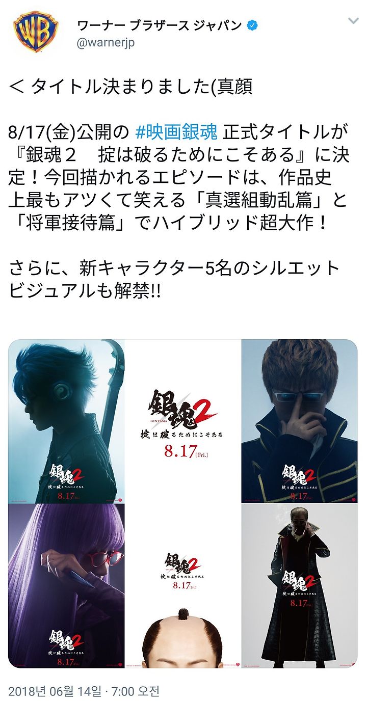 あ、役名、言っちゃいけなかったのかな?😅ま、シルエット見れば分かるよね?もろバレだよね?😅また、やっちゃった?俺😅ワーさんナーさん、ごめんなさいっっ‼️‼️とにかく銀魂2‼️「掟は破るためにこそある!」8月17日を待て‼️その前に50回目のファーストキスで予習‼️予習?とにかく観て‼️