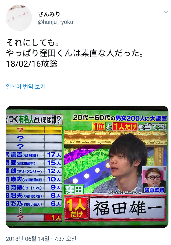 — 福田 雄一 (@fukuda_u1) 2018년 2월 16일