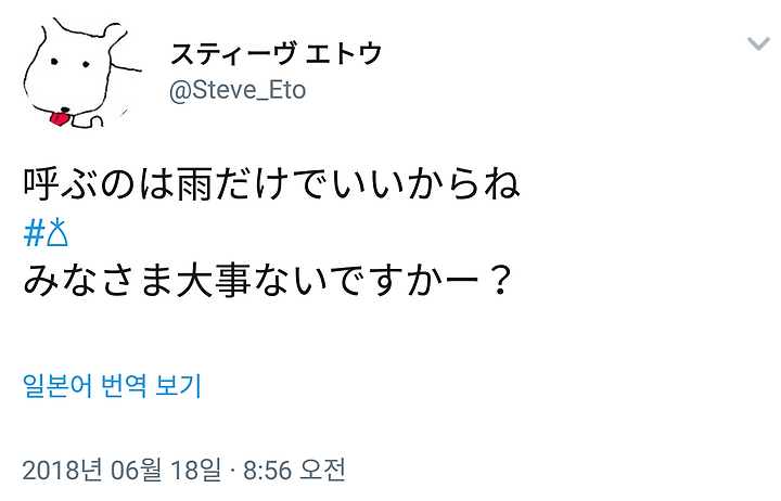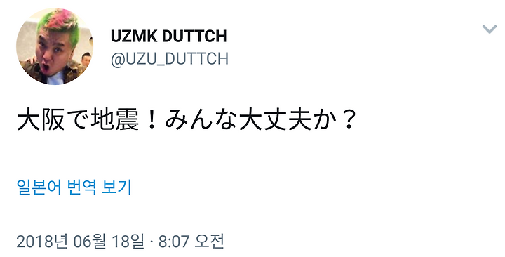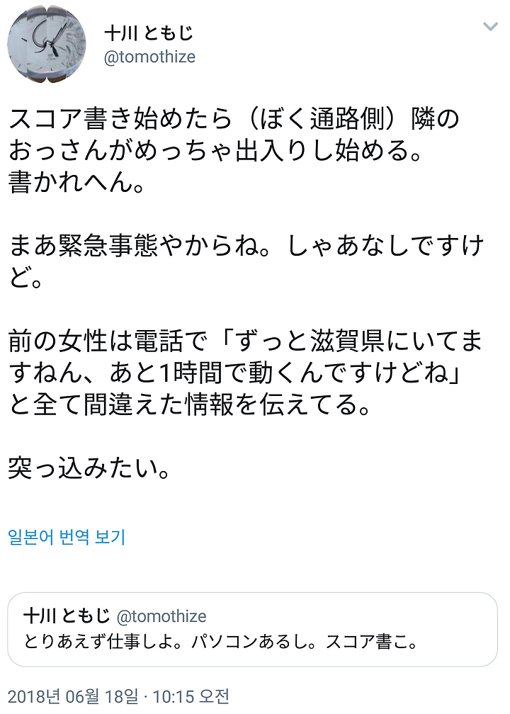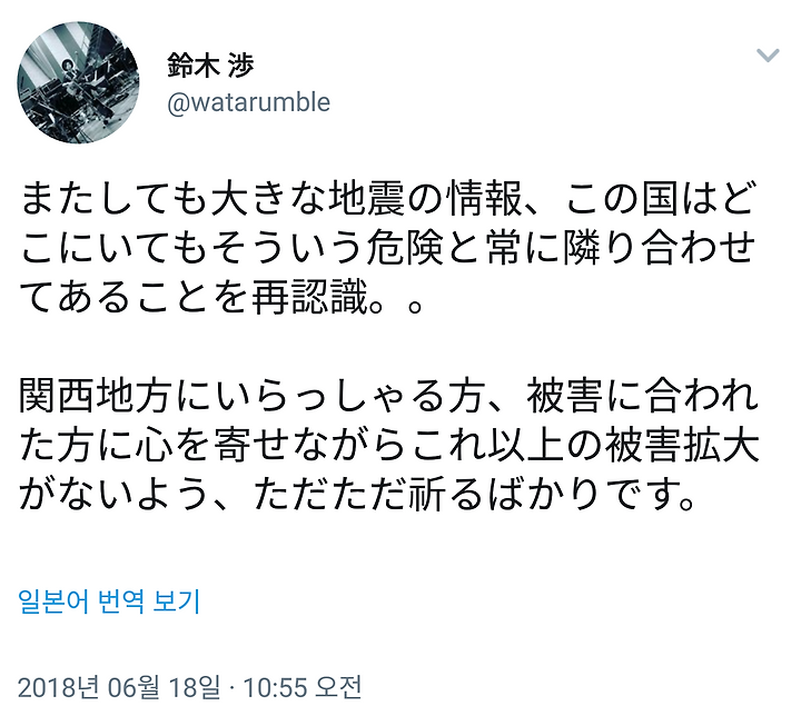 [도모토 쯔요시] 6/18 소가와 토모지상 트윗 (칸사이 지진)