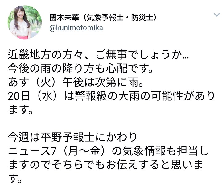 ニュース7(月〜金)の気象情報も担当しますのでそちらでもお伝えすると思います。 https://t.co/Z8Ok0qiALN