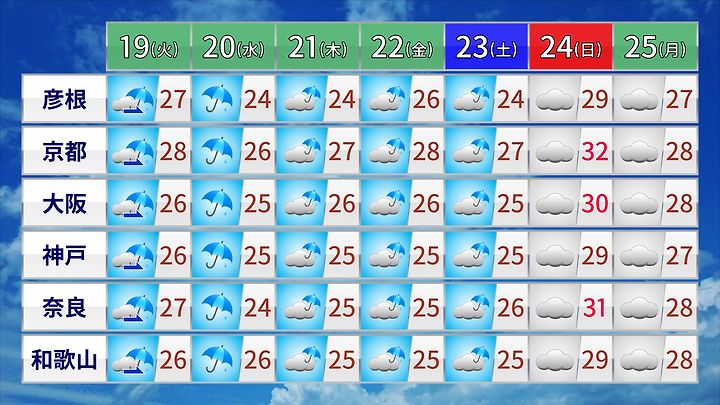 6/19 이후 칸사이 지방 일기 예보