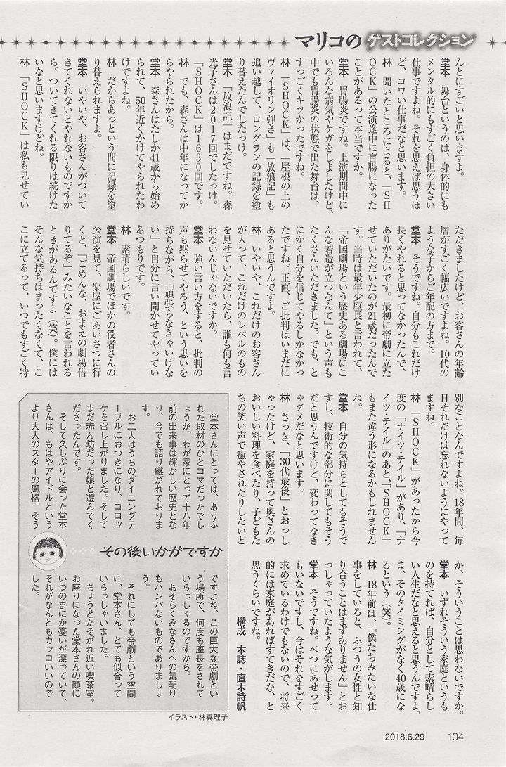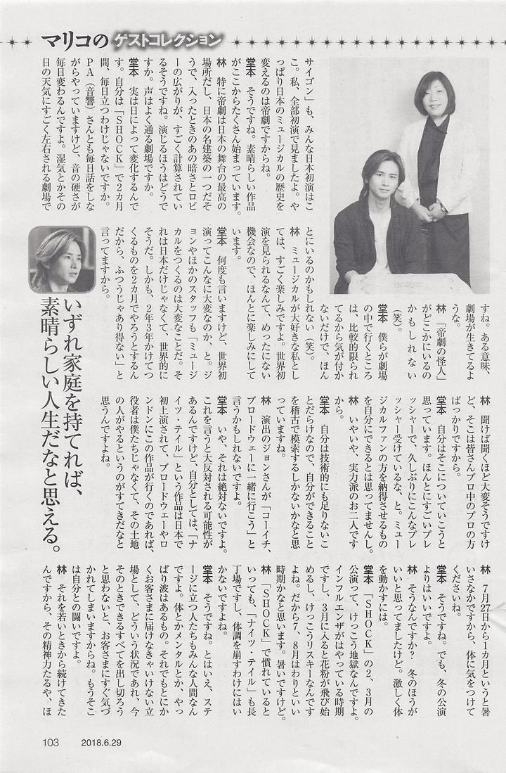 ■ 하야시: 이야, 그런게 분명하잖아요. 그렇지 않으면 이런 크 프로젝트가 진행될 리가 없으니까. 도모토상은 18년간 계속「SHOCK」로 여기 (제국극장)을 만석으로 해오신거지요.