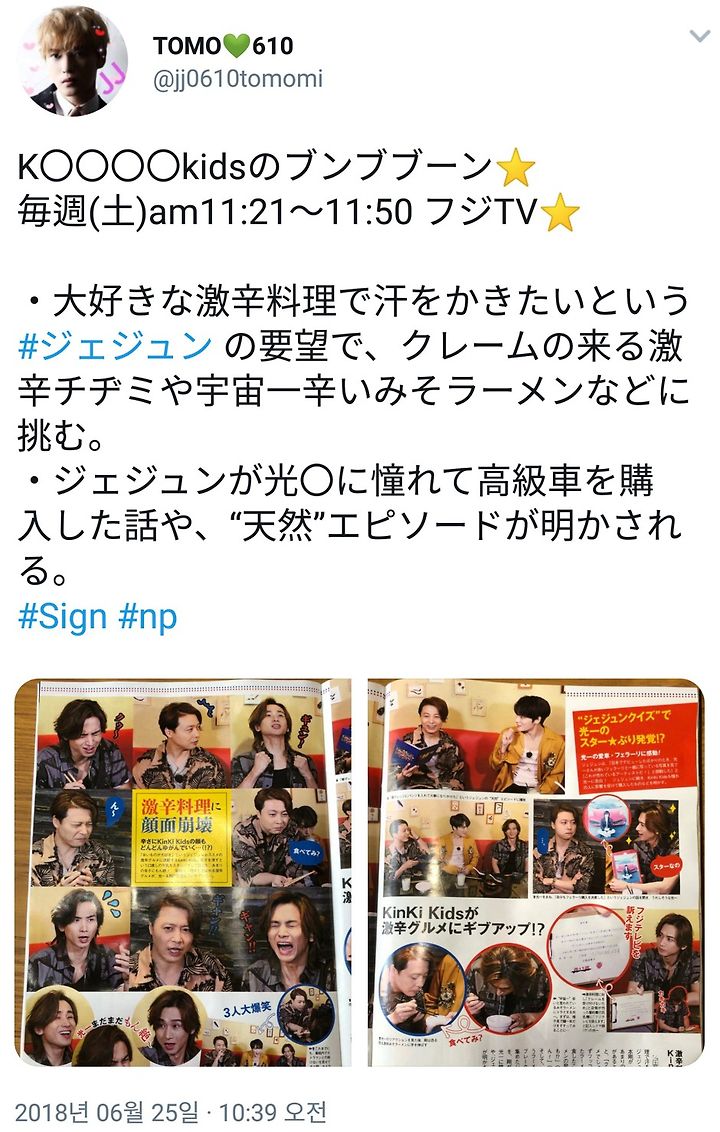 7/14(토) 방송의 붕부붕은 게스트 재중으로부터의 "정말 좋아하는 격하게 매운 요리로 땀을 흘리고 싶어!" 라는 리퀘스트로 도쿄에서 제일 매운 지짐이를 먹을 수 있는 세계의 고추를 취급하는 격하게 매운 가게에. 방송 독자의 매움 단위 "히- 히-" 로 환산하자 "매움 120 히- 히-" 라고 하는 초 격하게 매운 지짐이를 먹을 수 있을 것인지?! 또 도모토 쯔요시가 갖고 있는 "쯔요시의 비밀 메모"에 의하면 재중은 도모토 코이치에게 동경해 따라한 것이 있다든가 없다든가... 그 진상도 밝혀지는?!