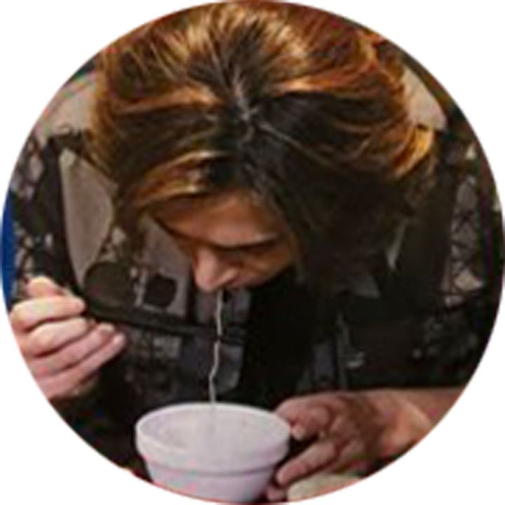 코이치의 리액션을 본 후, 쯔요시는 두려워하며 격하게 매운 미소라멘에 손을 뻗는다