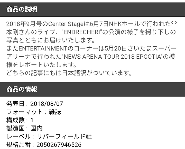 2018年9月号のCenter Stageは6月7日NHKホールで行われた堂本剛さんのライブ、"ENDRECHERI"の公演の様子を撮り下しの写真とともにお届けいたします。