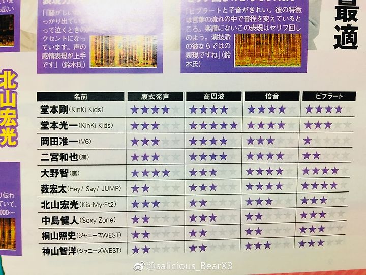 ※ 161109 週刊ザテレビジョン : 쟈니즈 가성(歌声)분석 (http://oding.tistory.com/8211)
