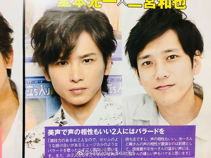연기력이 있는 두 사람이기 때문에 대사와 같이 주고받음이 있는 뮤지컬과 같은 발라드를 부른다면 재미있을 것이라고 생각합니다. 또 두 사람 모두 매우 아름다운 목소리의 소유자이고 목소리 궁합도 좋은. 코이치상과 쯔요시상의 궁합이 최강인 것은 전제로 하고, 배음 풍부한 코이치상의 따뜻한 목소리에는 니노미야상의 상냥한 목소리도 맞을 것이라고 생각합니다.