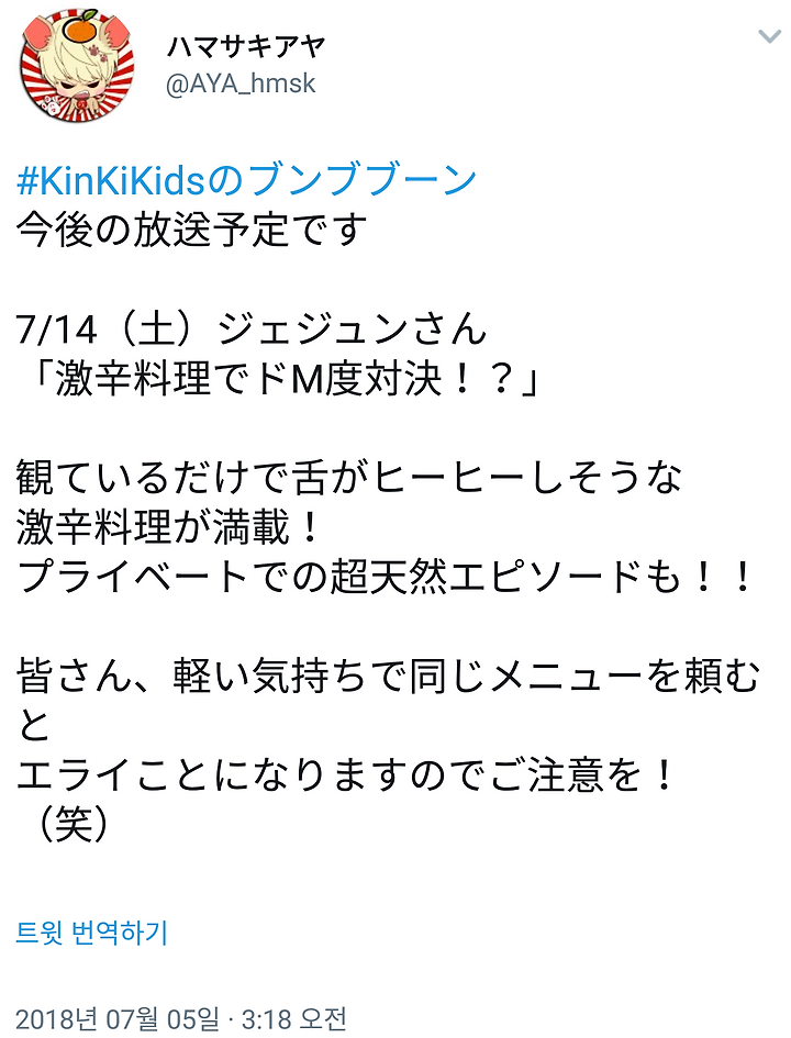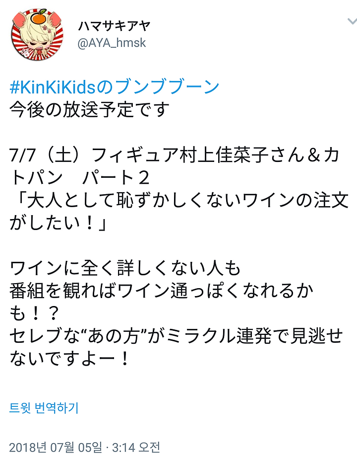 [KinKi Kids] 6/5 하마사키 아야상 트윗 (7/7 & 7/14 붕부붕)