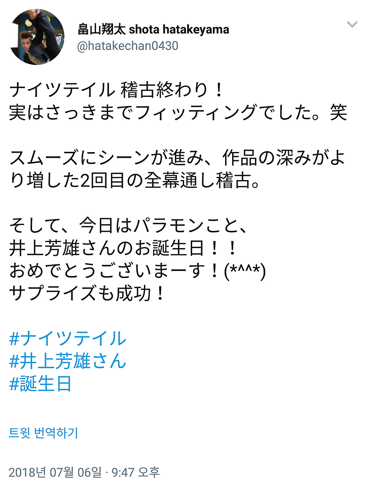 今日の何が楽しかったって、パラモン役の井上芳雄さんのサプライズバースデーと、衣装合わせの間の死ぬ程長かった待ち時間に、みんなと色んなお話しをしたことです(笑)🤣