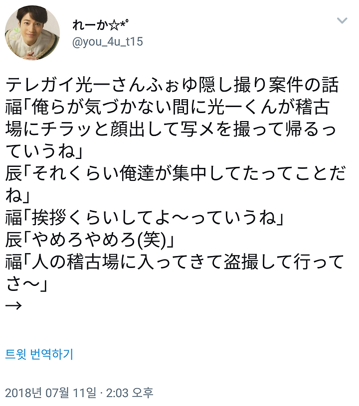 福「俺らが気づかない間に光一くんが稽古場にチラッと顔出して写メを撮って帰るっていうね」