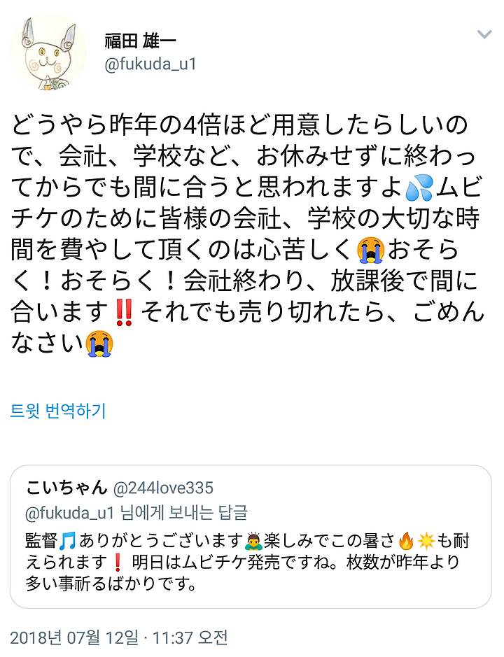 아무래도 지난해 4배 정도 준비했다는데, 회사, 학교 등 쉬지 말고 끝나고 나서도 늦지 않다고 생각합니다 💦 무비티켓 때문에 여러분의 회사, 학교의 소중한 시간을 뺏는 것은 괴롭😭 아마!아마!회사 끝나고 방과 후에 맞출 수 있을 거이요‼ ️ 그래도 다 팔리면, 죄송😭 https://t.co/RVwVYnpIl6