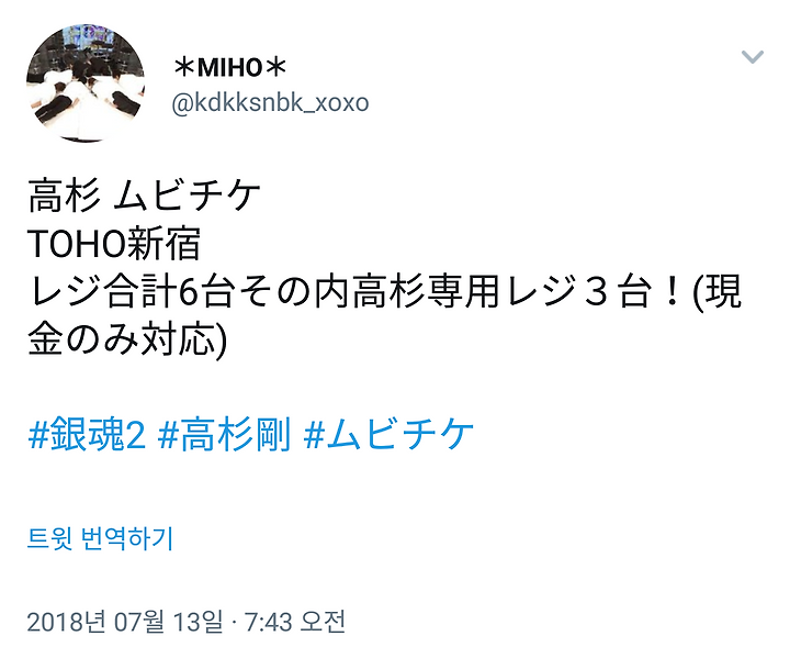 7시 15분 염원의 타카스기님 무비치케 GET♡