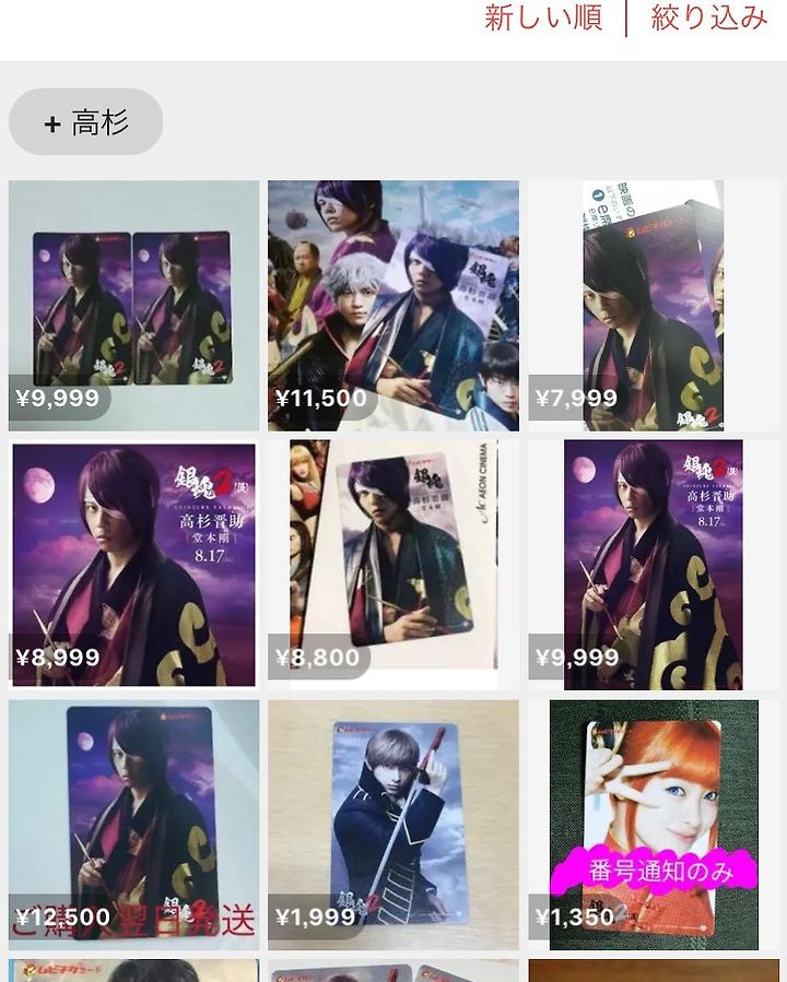 銀魂のムビチケ、丸の内ピカデリー、在庫いっぱい有るけど人少ない………てゆーか高杉さんだけ沢山ある……