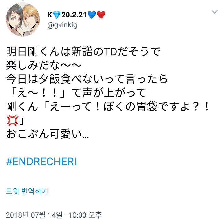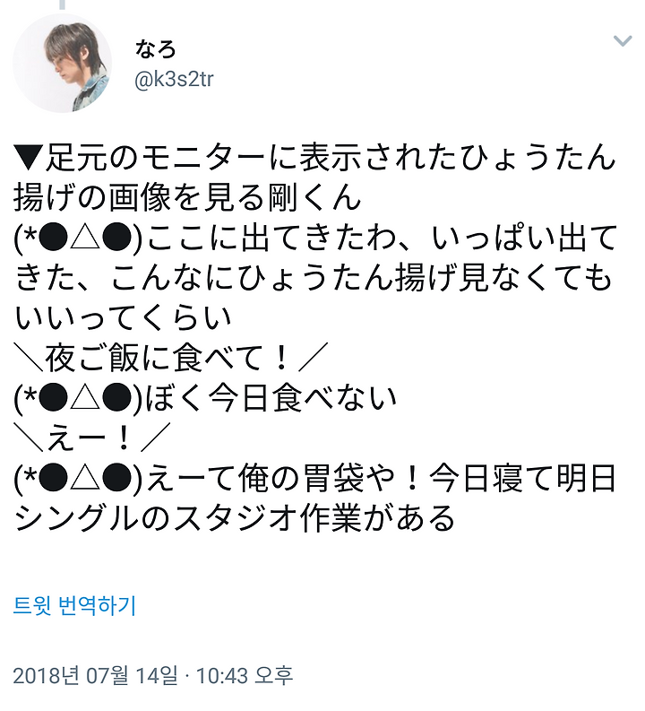 ■ 쯔요시: 에! 라니... 내 위장이잖아! 오늘 자고 내일 싱글 스튜디오 작업이 있어