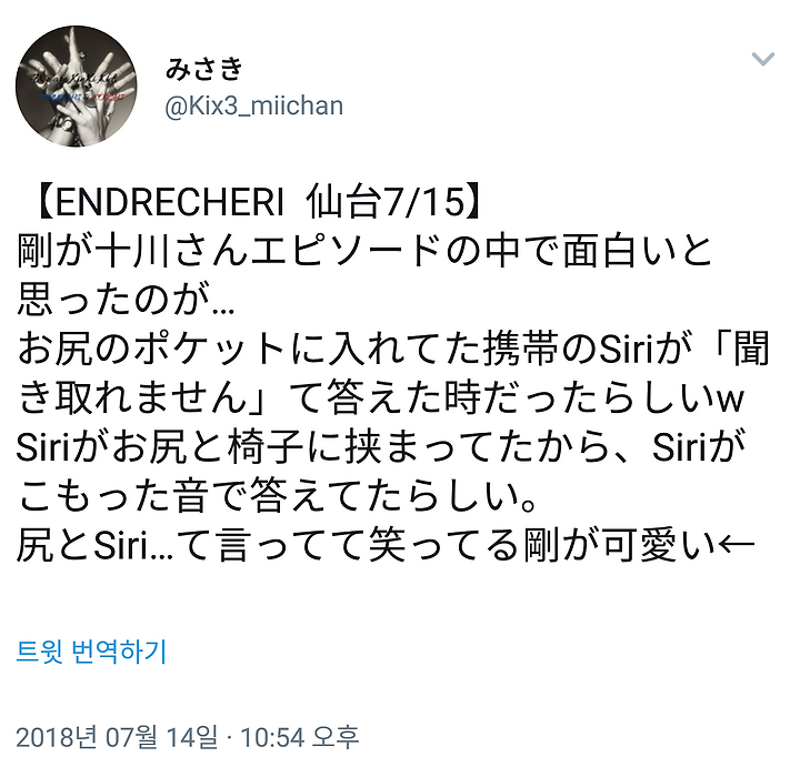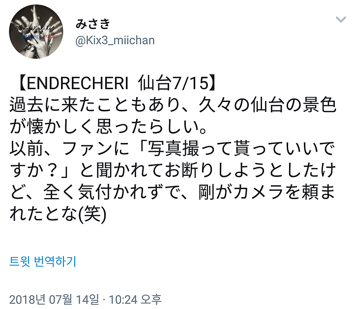 케리 센다이 공연 무사 종료! 마지막 MC에서 "슬슬 4시간 지날거야" 라며 쯔요시에게 들어서 깨닫고 깜짝 놀랐다.