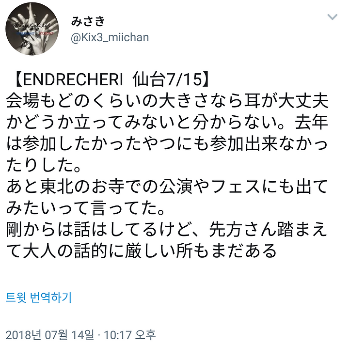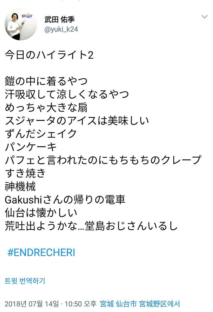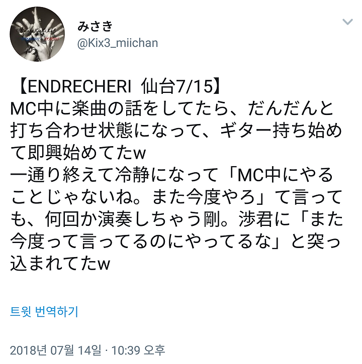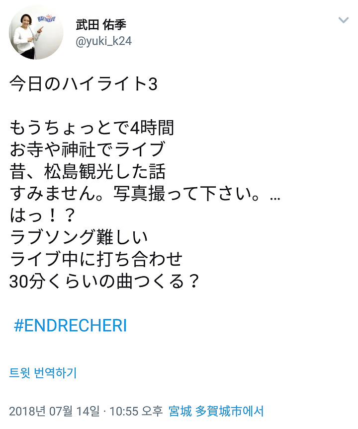 [도모토 쯔요시] 7/14 ENDRECHERI LIVE @ 센다이 (번역 추가)
