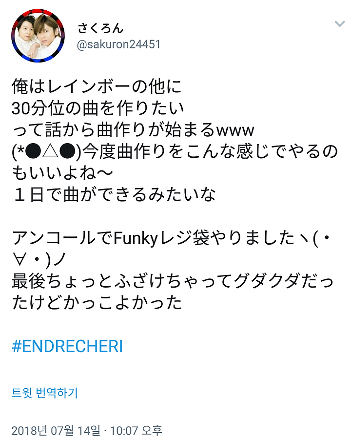 앵콜에서 FUNKY 레지부쿠로 해주었다.