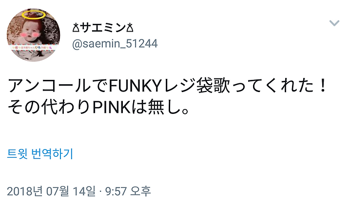 앵콜에서 Funky 레지부쿠로 불러주었다! 그 대신 PINK는 없음