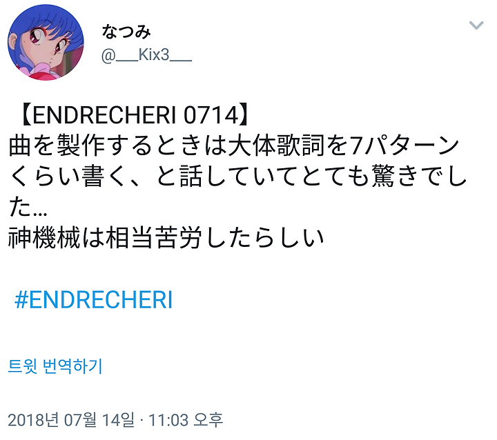 곡을 제작 할 때는 대체로 가사를 7패턴 정도 쓴다, 라고 하는 말에 매우 놀랐습니다....