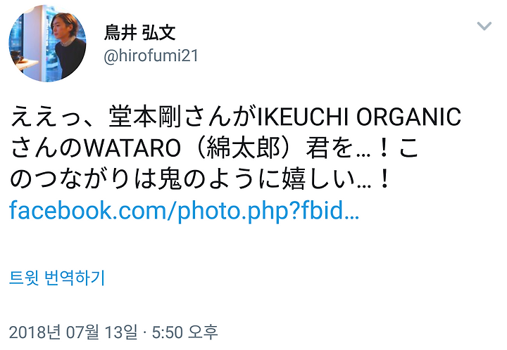ええっ、堂本剛さんがIKEUCHI ORGANICさんのWATARO(綿太郎)君を…!このつながりは鬼のように嬉しい…! https://www.facebook.com/photo.php?fbid=1745508748838449&set=a.169859466403393.52943.100001380233689&type=3&theater …