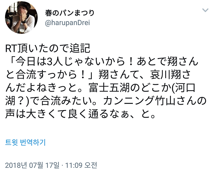 "오늘은 3명이 아니니까! 나중에 쇼우 씨와 합류 할 테니까!" 쇼오씨는 아아카와 쇼상이지 분명. 반드시. 후지 고호수의 어딘가(가와구치코?)에서 합류 거 같아.칸닌구 타케야마씨의 목소리는 크고 잘 들리네, 라고.