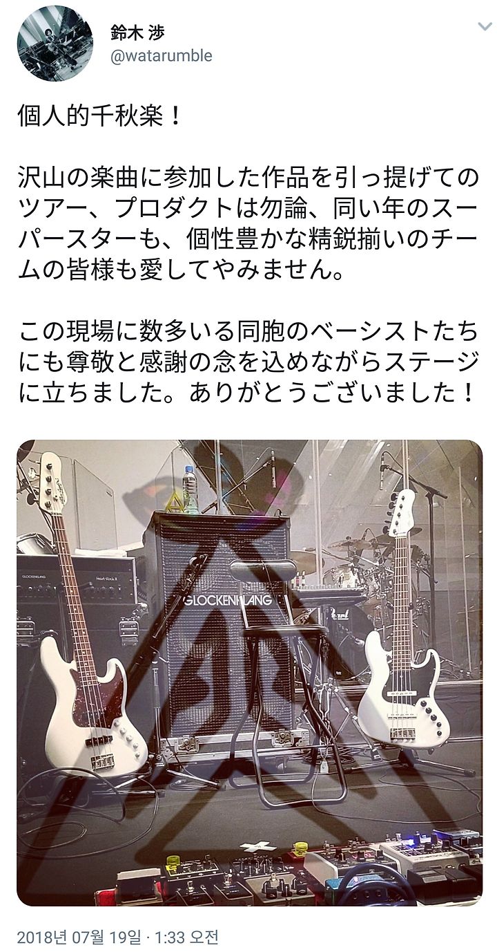 この現場に数多いる同胞のベーシストたちにも尊敬と感謝の念を込めながらステージに立ちました。ありがとうございました!