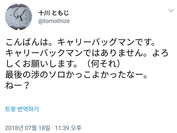 곰방와. "캬리박구"만 입니다. "캬리박쿠만"이 아닙니다. 잘 부탁드립니다. (뭐야 그게)